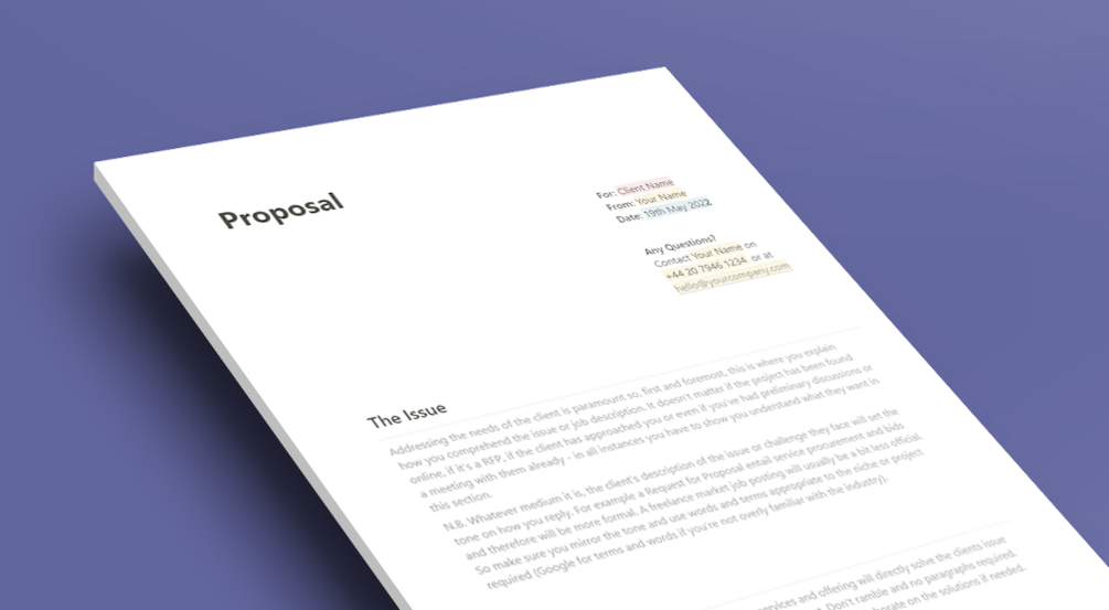 Outline the value you bring to a project, define the work to be done, project schedule and costs, and payment terms, whats required from the client, what you will deliver and more with...